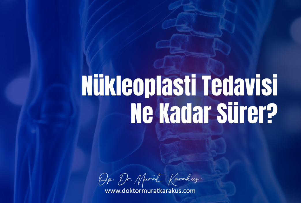 Nükleoplasti tedavisi  20–30 dakika sürer. Yani öyle saatlerce süren, yorucu ve hastanede yatmayı gerektiren bir işlem değildir. Çoğu hasta sabah girip öğlen evine döner. Hatta bazıları “İşlem bitti mi?” diye sorar çünkü genel anestezi bile verilmez, sadece lokal uyuşturma yapılır.